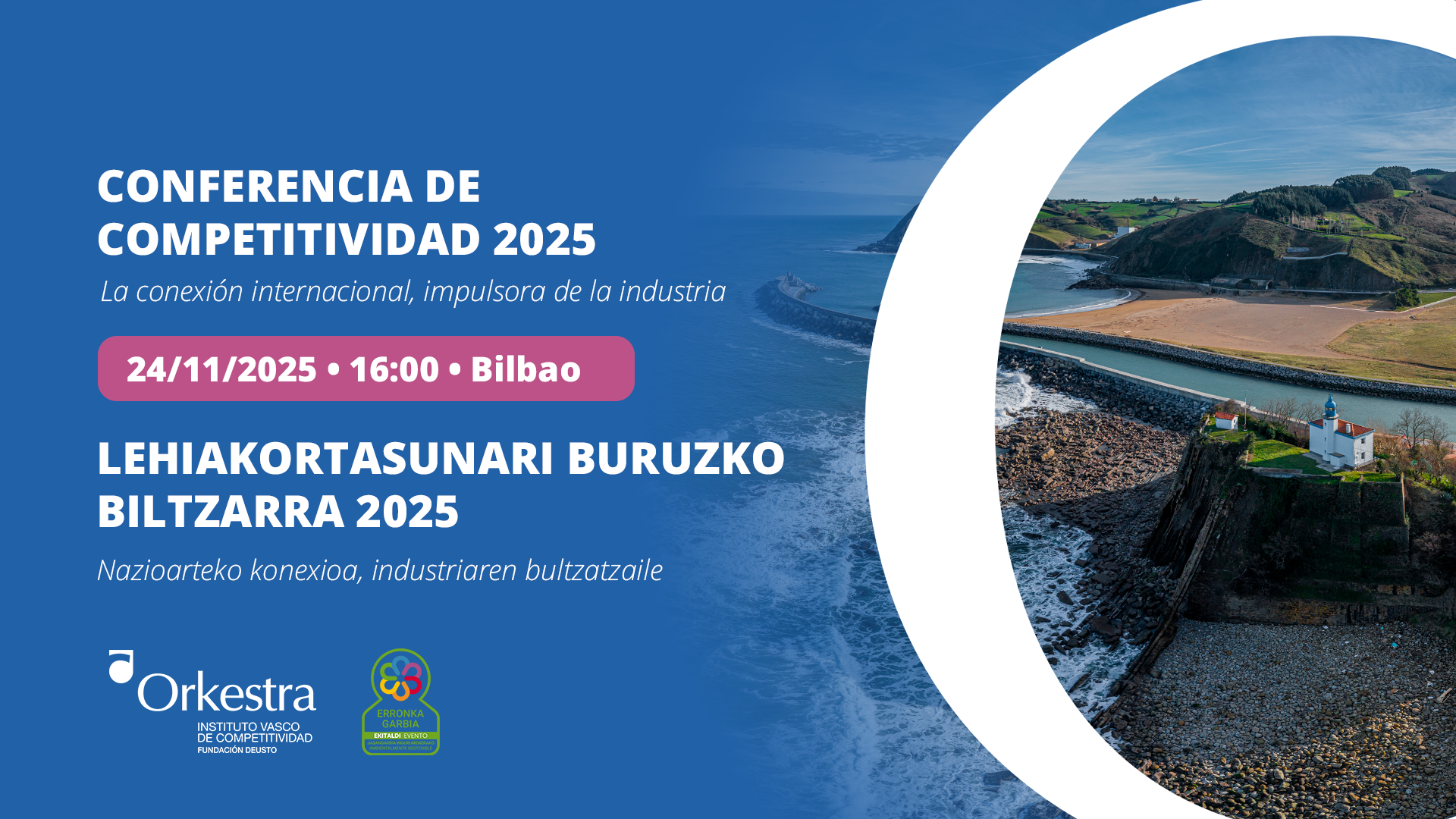 The Competitiveness Conference is the event where the Basque Country Competitiveness Report, prepared annually by Orkestra with the support of SPRI, is presented. This year, the report focuses on international connectivity as a way to strengthen the Basque industry.