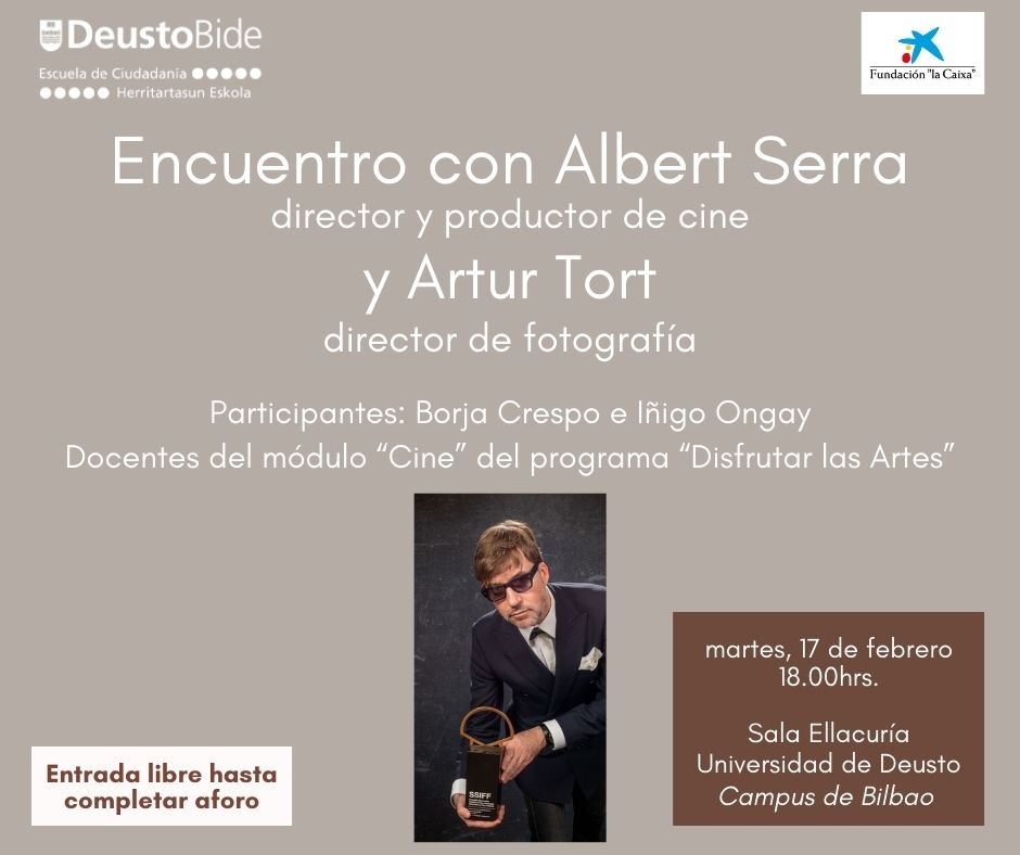 Los profesores Borja Crespo e Íñigo Ongay conversarán con el director y productor Albert Serra el director de fotografía Artur Tort. Su última película Tardes de soledad ganó la Concha de Oro en el Festival Internacional de Cine de San Sebastián y está nominada a dos Goya.