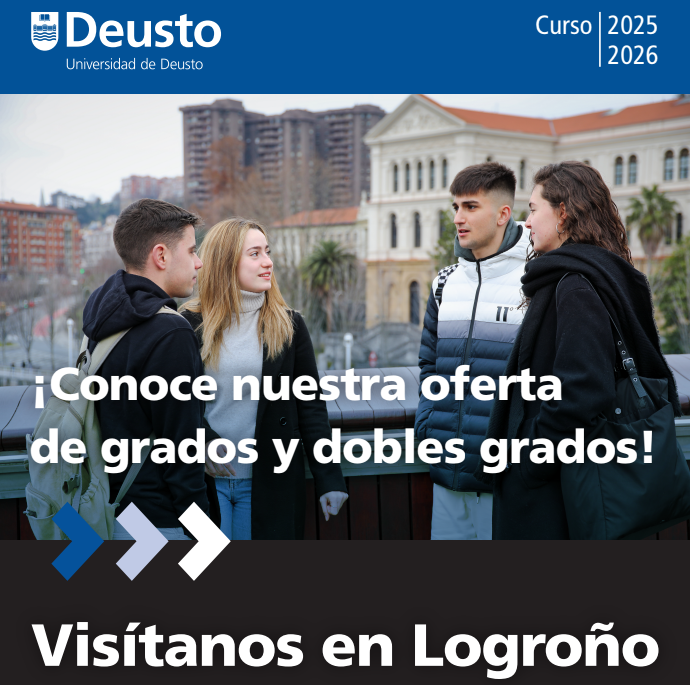 La Universidad de Deusto celebrará el 22 de enero una Jornada Informativa en el Hotel NH Herencia La Rioja de Logroño, entre las 17:00 y las 20:00, con el objetivo de dar a conocer la oferta de Grados y Dobles Grados para el próximo curso 2025/26.