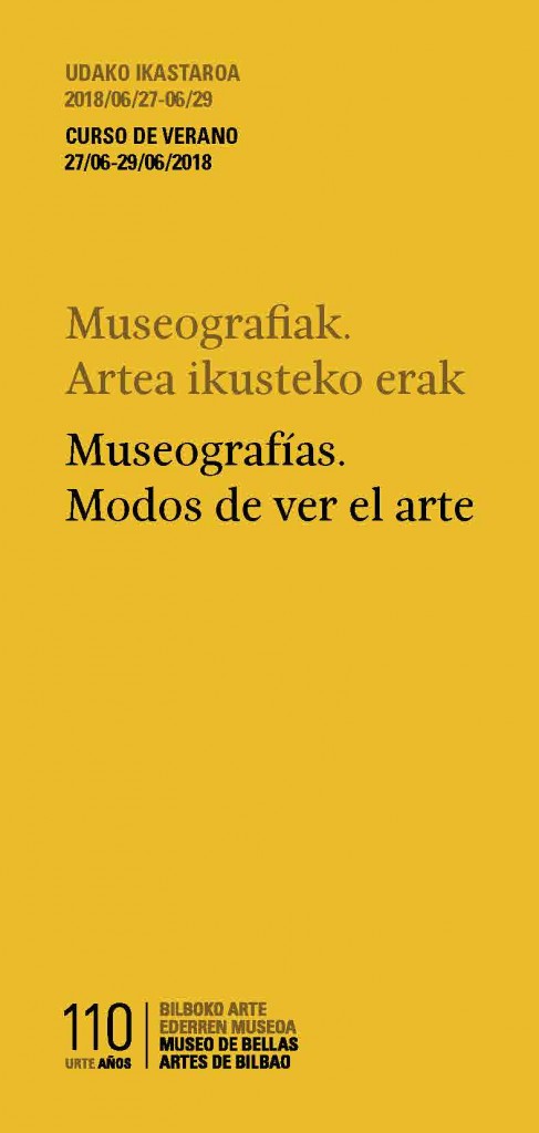 El Museo de Bellas Artes de Bilbao, la Fundación Gondra Barandiarán y la Universidad de Deusto presentan la primera edición del curso de verano "Museografías. Modos de ver el arte", que a lo largo de los días 27, 28 y 29 de junio desarrollará un intenso programa académico dirigido por Miguel Zugaza.