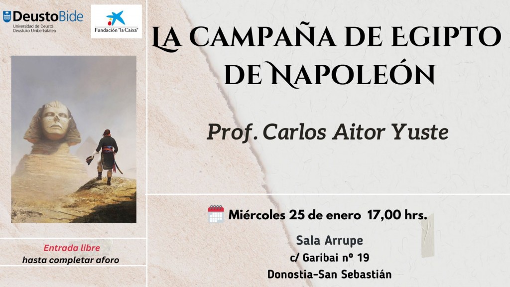 A continuación, conferencia sobre la “Campaña de Egipto de Napoleón” el próximo miércoles 25 de enero a las 17:00 hs. en la Sala Arrupe (calle Garibai, 19).