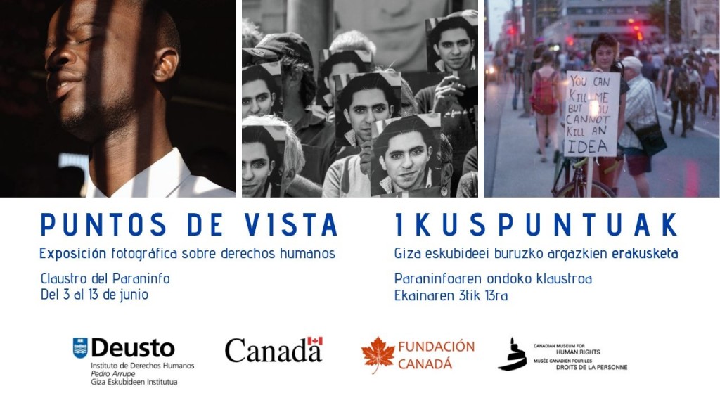 El Instituto de Derechos Humanos Pedro Arrupe, en colaboración con la Embajada de Canadá en España y la Fundación Canadá, os invita a visitar del 3 al 13 de junio la exposición fotográfica Puntos de Vista, propiedad del Canadian Museum for Human Rights de Winnipeg, en el Claustro del Paraninfo.