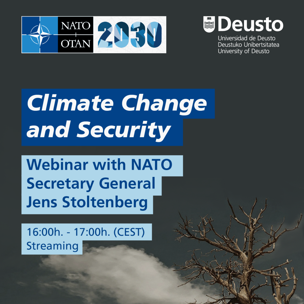 Datorren astelehenean, irailaren 28an, Deustuko Unibertsitateko ikasleek online topaketa batean parte hartzeko aukera izango duzue NATOko Idazkari Nagusi Jens Stoltenberg-en eta nazioarteko beste bederatzi unibertsitatetako ikasleen artean, ikuspuntuak trukatzeko eta klima aldaketari lotuta sortzen ari diren segurtasun erronkei buruzko eztabaida suspertzeko.