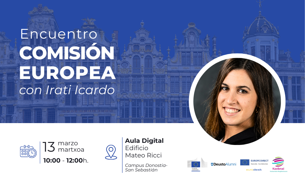 Sortu zure Newsletterra “Europako Batzordea” topaketa Irati Icardorekin 2026/03/1310:00 - 12:00Areto Digitala Ikusi espazioa Mundaiz bidea, 50. 20012 DonostiaIkusi Google Maps-en Partekatu ekitaldia Gehitu Google Calendarrera Encuentro "Comisión Europea" con Irati Icardo Etiketak Campus San Sebastián Deusto Business School Empleo y Emprendimiento Gizarte eta Giza Zientzien Fakultatea Facultad de Derecho Utzi erantzuna Utzi erantzunaZure e-posta helbidea ez da argitaratuko. Beharrezko eremuak * markatuta daudeIruzkin * Izena * E-posta * Webgunea Gorde nire izena, helbide elektronikoa eta webgunea arakatzaile honetan, hurrengoan iruzkin bat egiten dudanerako. Δ